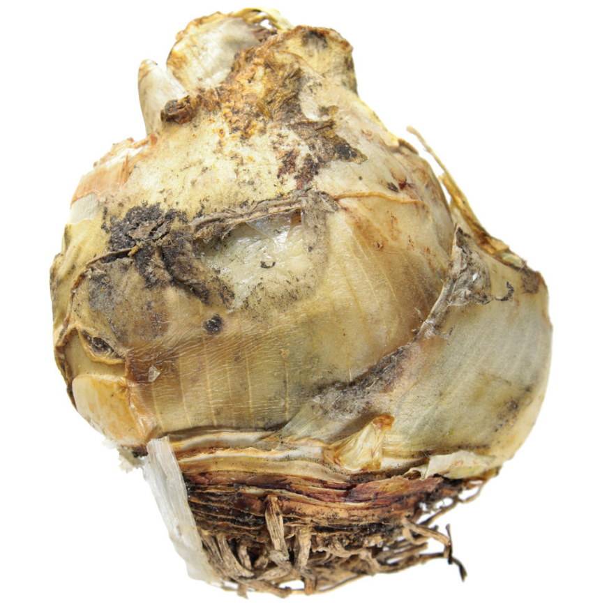 Прежде, чем убрать луковицу на зимовку, обязательно очистите ее от засохших корешков и омертвевших чешуек.