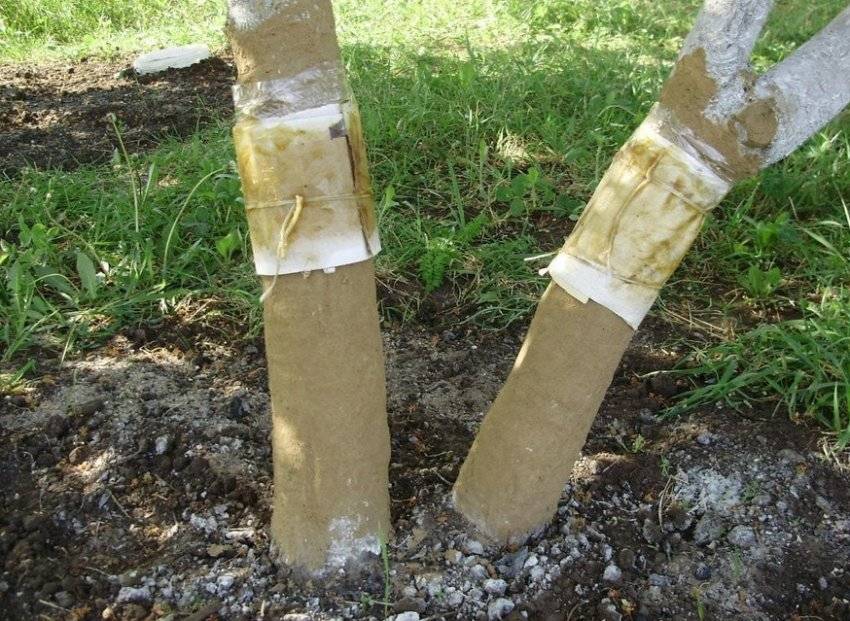 Для молодых саженцев, однолеток и двухлеток, можно предусмотреть возможность шатрового укрытия. Однако с более высокими штамбами так уже не получится. Потому стволы оборачивают рубероидом, мешковиной, толем или любыми иными материалами. На прикорневую зону набрасывают маты из соломы или соломенных снопов, еловых веток, сухих листьев.