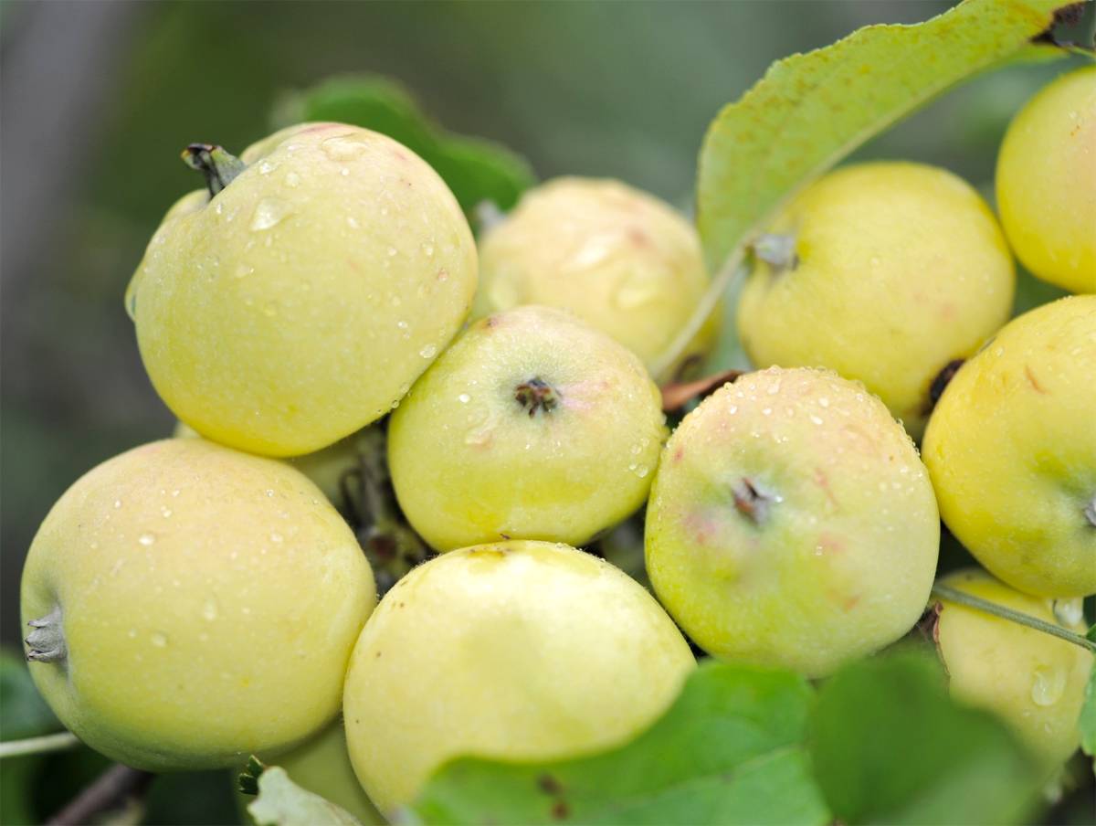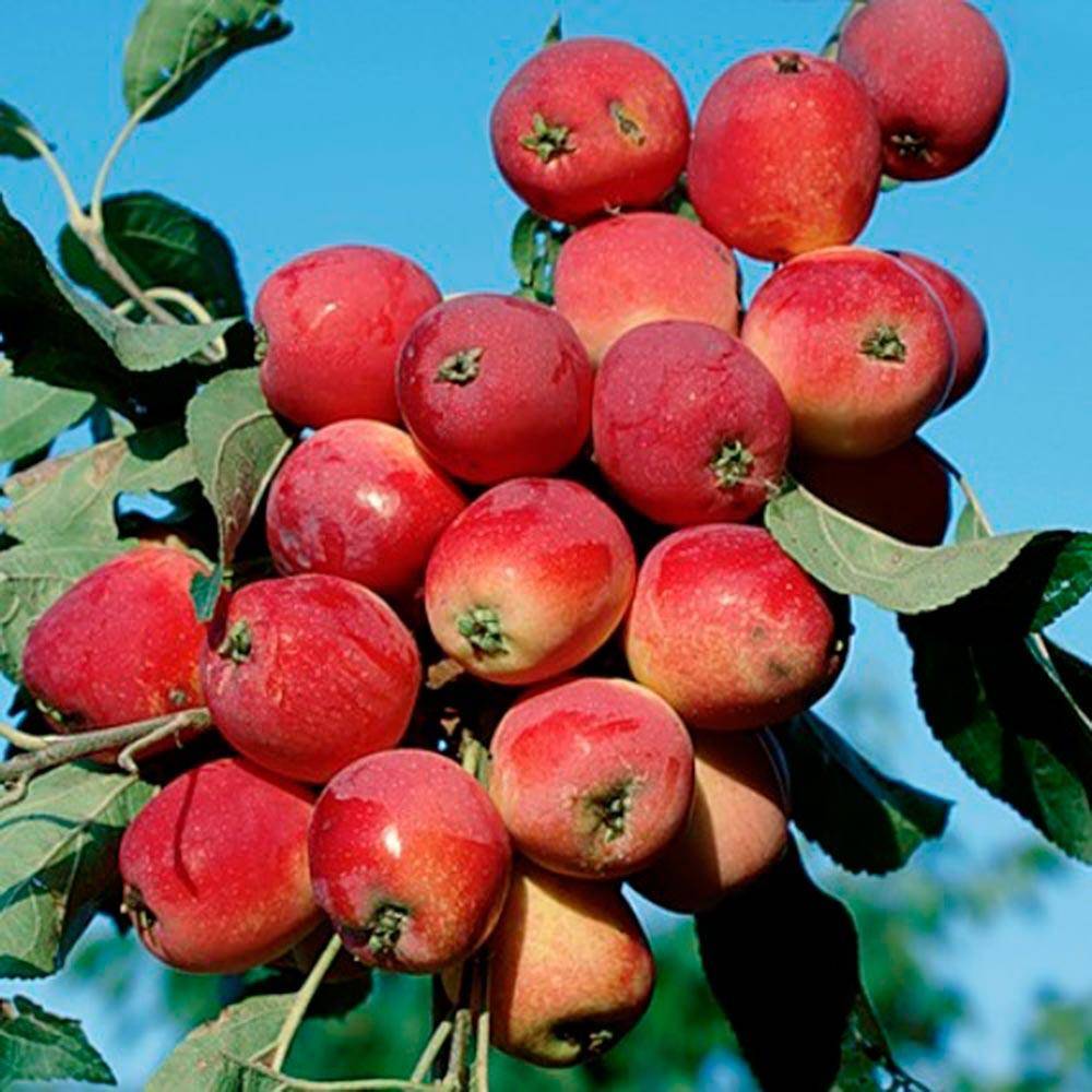 Плоды созревают в конце августа — начале сентября. Периоды отдыха практически отсутствуют. Это дерево плодоносит почти каждый год с высокой урожайностью. Яблоки цветом от желтого до красного, с различными оттенками. Вес плода, в зависимости от сорта, колеблется в пределах 20-200 г. Для сравнения, яблоко сорта Антоновка может весить до 600 г!