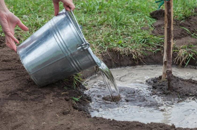 Затем обильно поливают. Когда грунт немного осядет, восполняют недостающий объем и еще раз увлажняют.