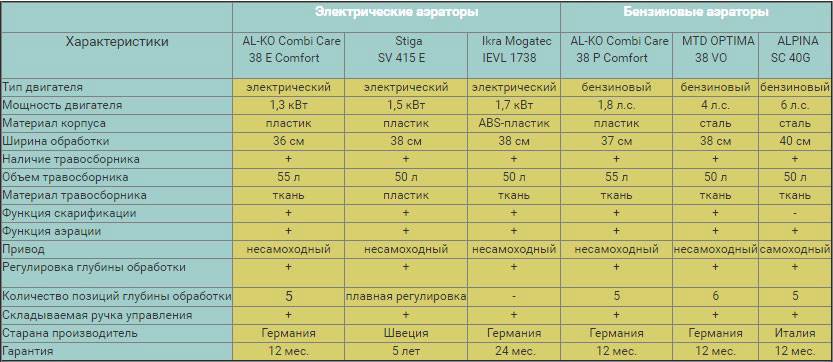 Приведенные в таблице модели успешно выполняют аэрирование на грунтах любой структур.