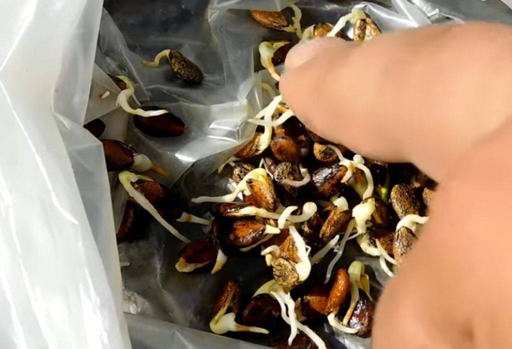 спустя отведенное время достаньте пророщенные семена. Если некоторые семечки так и не проросли, во время посадки пролейте их водой с температурой +50…+60 градусов.