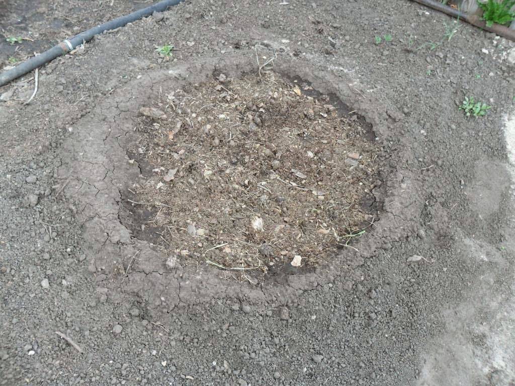 Шаг третий | Выкопайте большую лунку для арбуза и залейте ее небольшим количеством воды. |