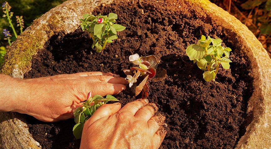 Высадка рассады бегонии в контейнер