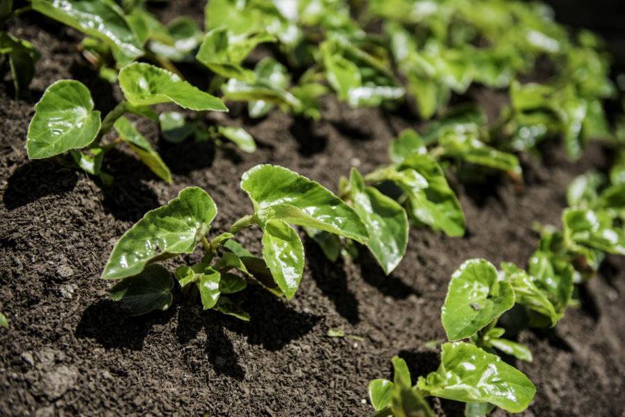 Перед посадкой клубни нужно очистить от загнивших ростков и обработать в слабом растворе перманганата калия.