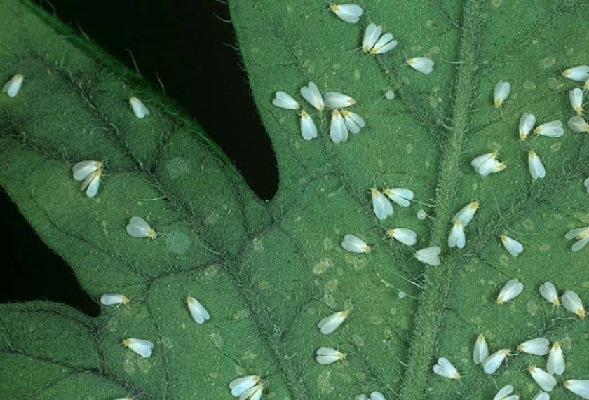 Огородник может сразу не распознать, что на его участке появились вредители — белокрылки выбирают для жительства нижние листья растения или же прячутся на их внутренней стороне.