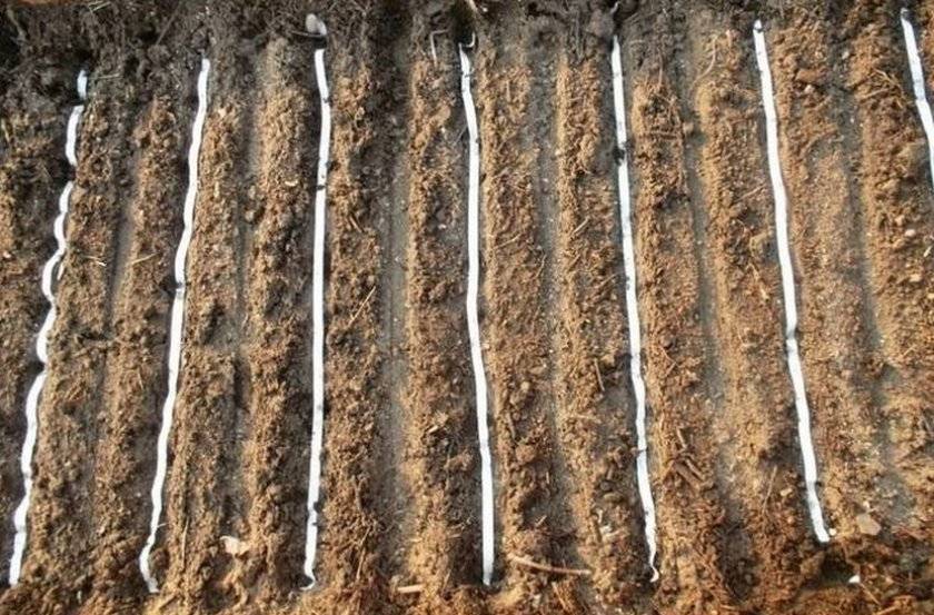 Если почва суглинистая, то добавляют по ½ ведра песка и торфа на каждый квадрат площади, по гряде с кислой почвой рассыпают мел или доломитовую муку (по 1 стакану). Почву после перекапывания боронят, через 1,5-2 недели рыхлят, выравнивают поверхность.