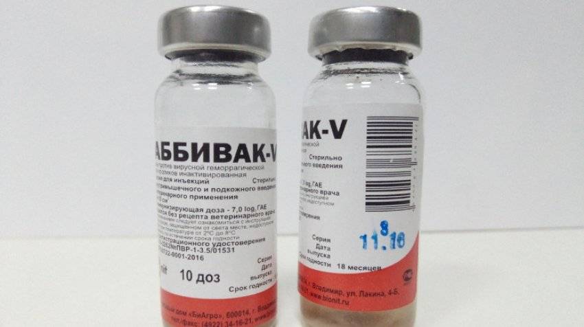 Существует ряд заболеваний кроликов, в частности, геморрагическая болезнь и миксоматоз, которые не поддаются лечению. Они протекают бессимптомно и приводят к мгновенной гибели животных. Предотвратить подобный летальный исход помогает вакцинация, для которой применяют препарат «Раббивак V». Вакцина разработана на основе обработанного штамма геморрагического вируса и позволяет активизировать выработку иммунитета к определённому виду недуга.