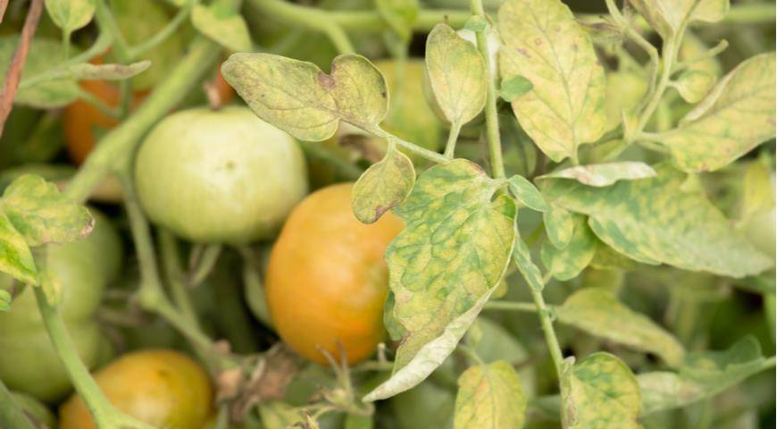 Желтеют листья томатов и покрываются пятнами: при каких болезнях