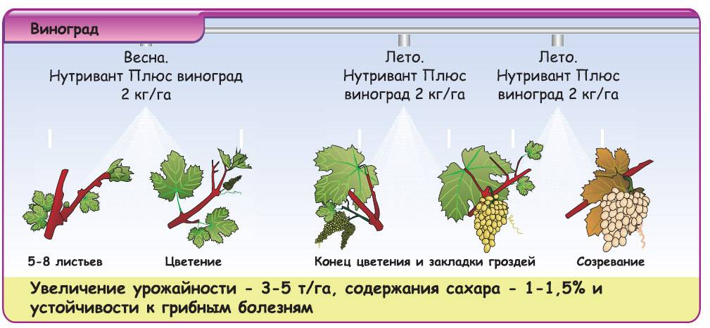 Обработка культур лекарственными препаратами или растворами, приготовленными по народным методикам, позволяет обезопасить виноградник от инфекций. Обработка проводится в течение всего периода вегетации и плодоношения.