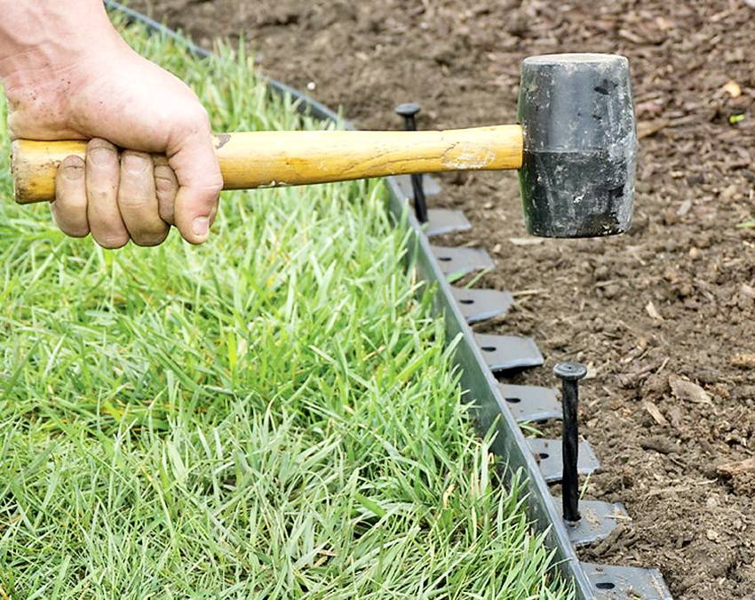 Новые технологии значительно облегчают и упрощают процесс установки. Качество и долговечность гибких лент обеспечивают высокое уплотнение, но в отдельных случаях бордюры дополнительно укрепляют металлической арматурой (стальным тросом). В целом процесс ограждения настолько прост, что по силам женщине или подростку. В продаже доступны комплекты крепежа и инструментов, чтобы справиться с задачей своими руками.
