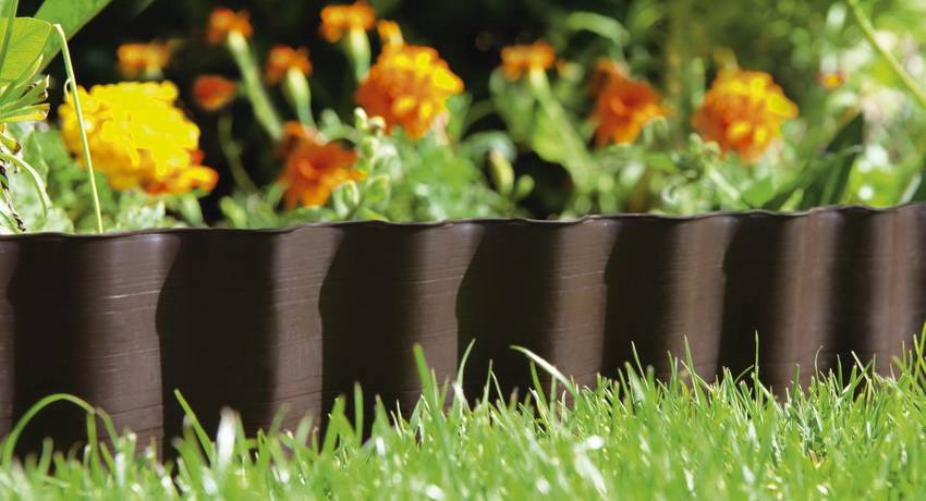 Пластиковый бордюр представляет собой гибкую ленту. В продаже можно найти множество вариаций подобных изделий.