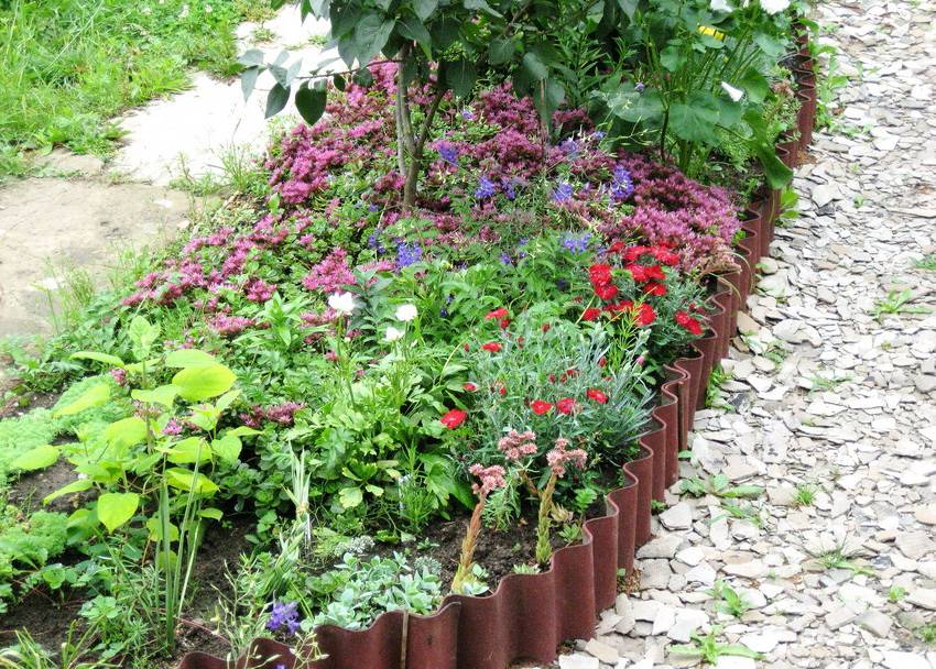 - благодаря своей гибкости лента может использоваться для создания грядок и клумб необычной формы, четких геометрических линий или волнообразных;