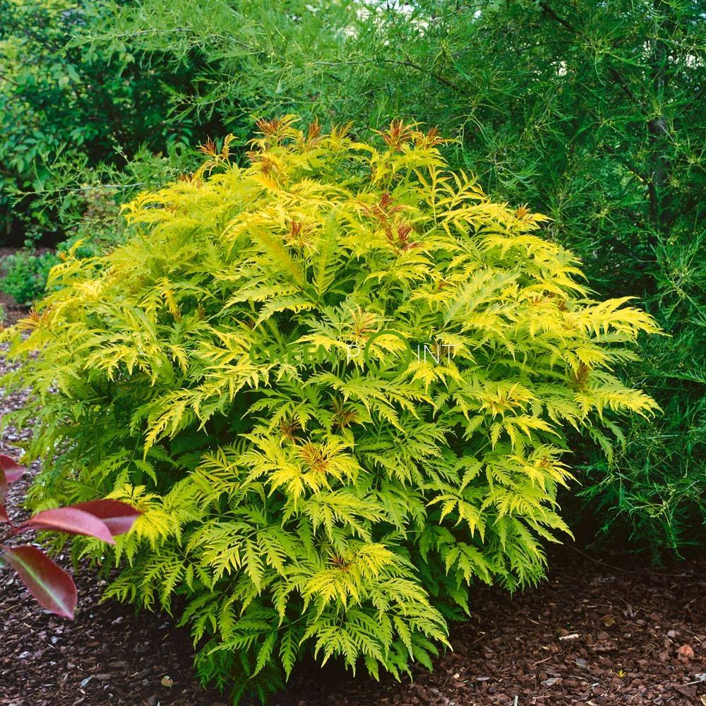 Одна из форм канадской бузины. Отличается зелено-золотистым цветом листвы. Помимо полезных сочных ягод, созревающих в сентябре, весь сезон украшает собой сад. Поскольку кустарник хорошо относится к обрезке, то ему можно придавать различные формы. Сильно разросшийся куст представляет собой шатер. Устойчив к болезням.