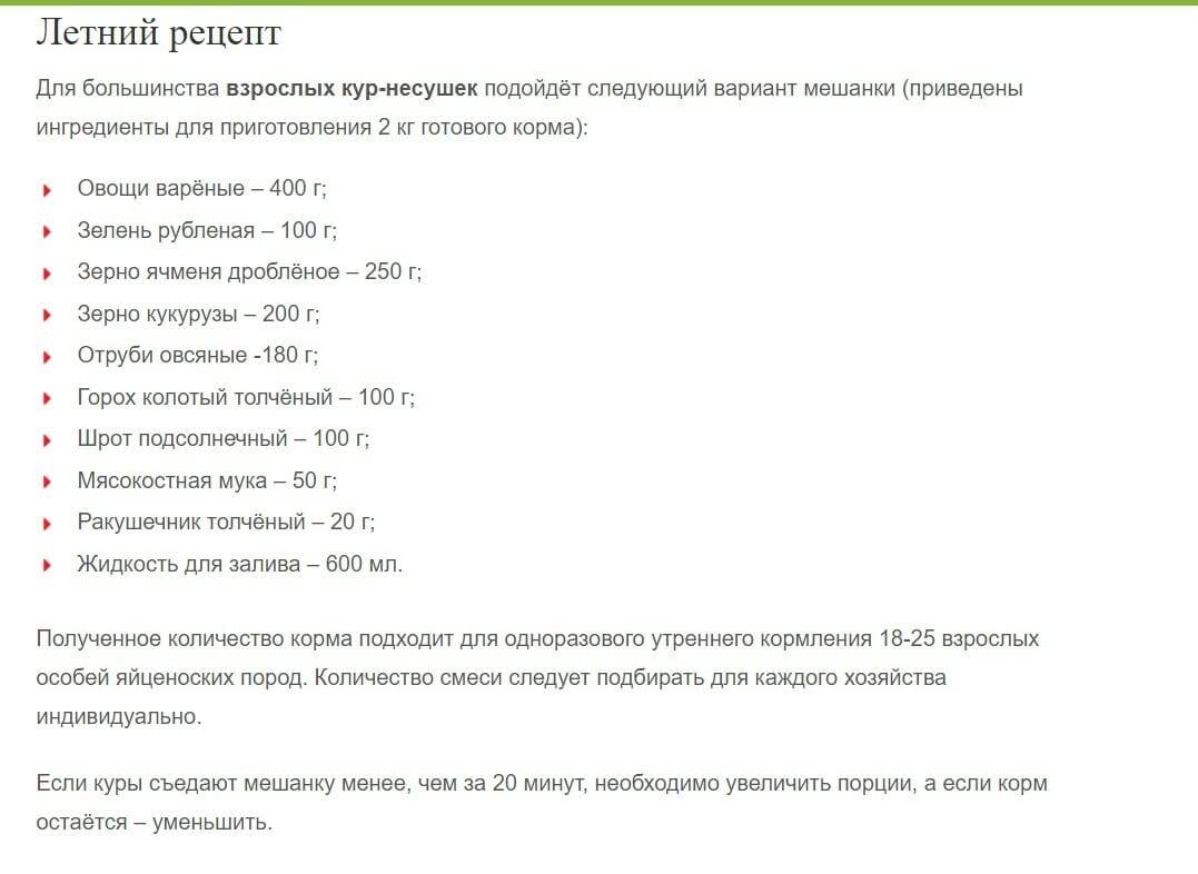 Поэтому очень важно составить рацион питания птиц таким образом, что бы он покрывал суточную потребность каждой несушки в витаминах, макро и микроэлементах. Часто влажный корм называют мешанкой