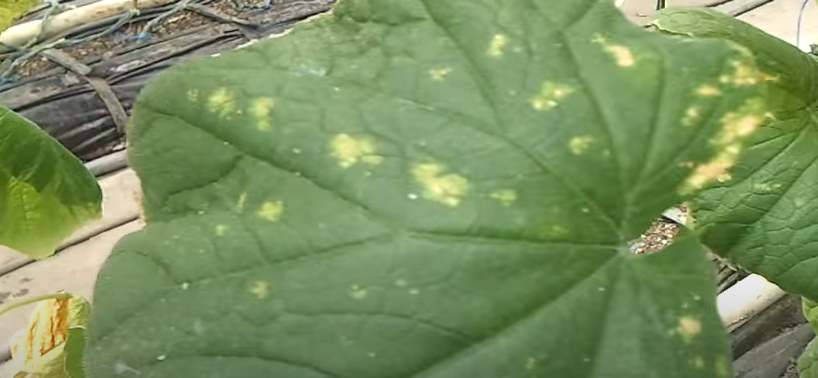 Белую и обыкнвенную мозаику легко определить по листьям огурцов