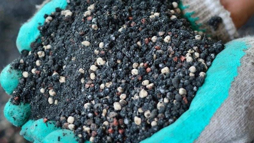 - 1 чайн. л. аммиачной селитры, 3 стол. л. суперфосфата и 2 чайн. л. сернокислого калия;