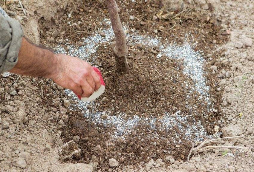 - При добавлении удобрений под корень отступают от ствола 50 см.