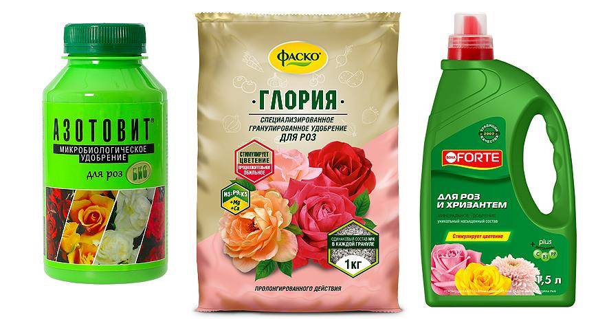 В качестве удобрения для роз весной нередко используют комплексные препараты, такие как «Кемира», «Агрикола», «Фертика». В конце периода вегетации куст удобряют препаратами с медью, калием, фосфором, железом и цинком для повышения стойкости к морозам.
