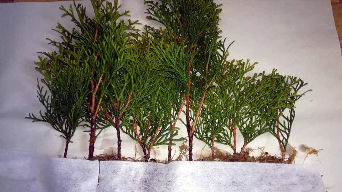 Порядок укладки черенков туи для укоренения во мху следующий: