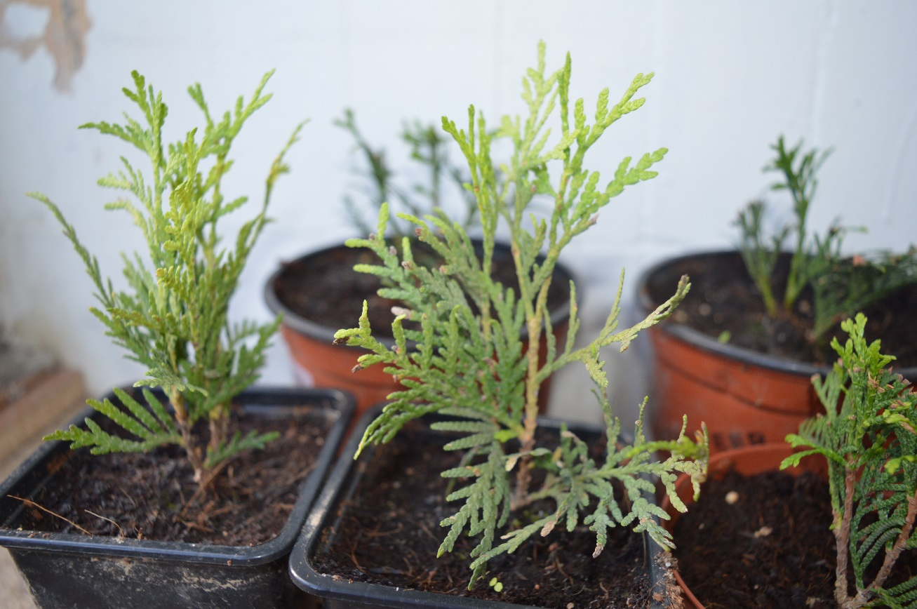 Если укоренение черенков туи происходило в сфагнуме или ящике для рассады, то через 14 дней после образования корешков их рассаживают для дальнейшего роста в отдельные горшки или на грядку, где им предстоит расти до высаживания на постоянное место роста. Грунтовая смесь должна обязательно содержать добавки торфа и листового перегноя.