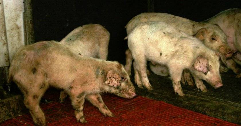 - высокая влажность воздуха в помещении, где содержатся свиньи;