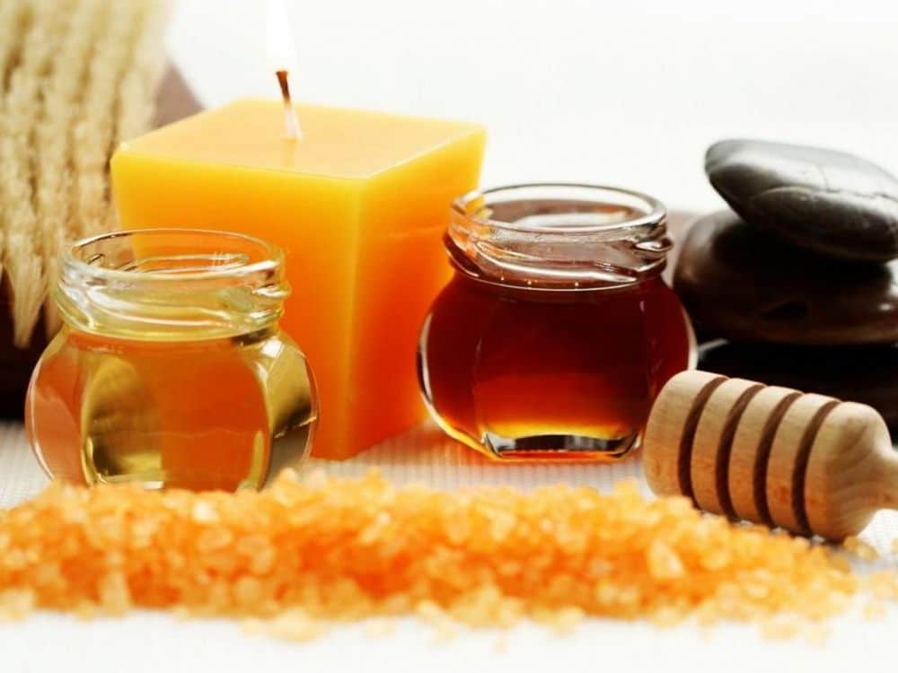 Если растопить его на водяной бане и добавить перемолотые орехи, можно получить прекрасный скраб с питательными абразивными частичками, которые отшелушивая ороговевшие частички кожи одновременно подпитают ее насыщенными жирными кислотами орехов и моносахаридами меда.