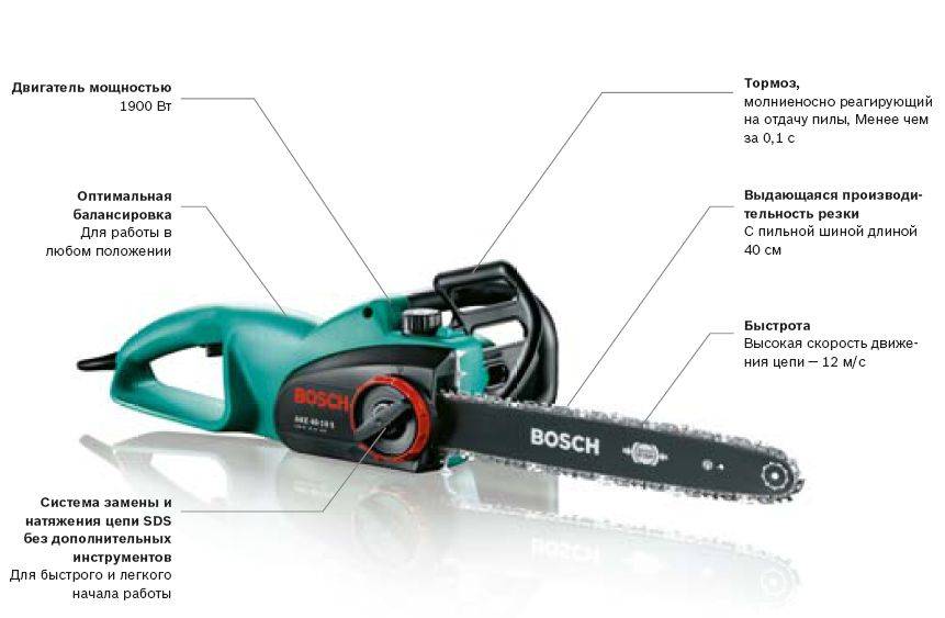 Строение электрической цепной пилы на примере одной из моделей рынка