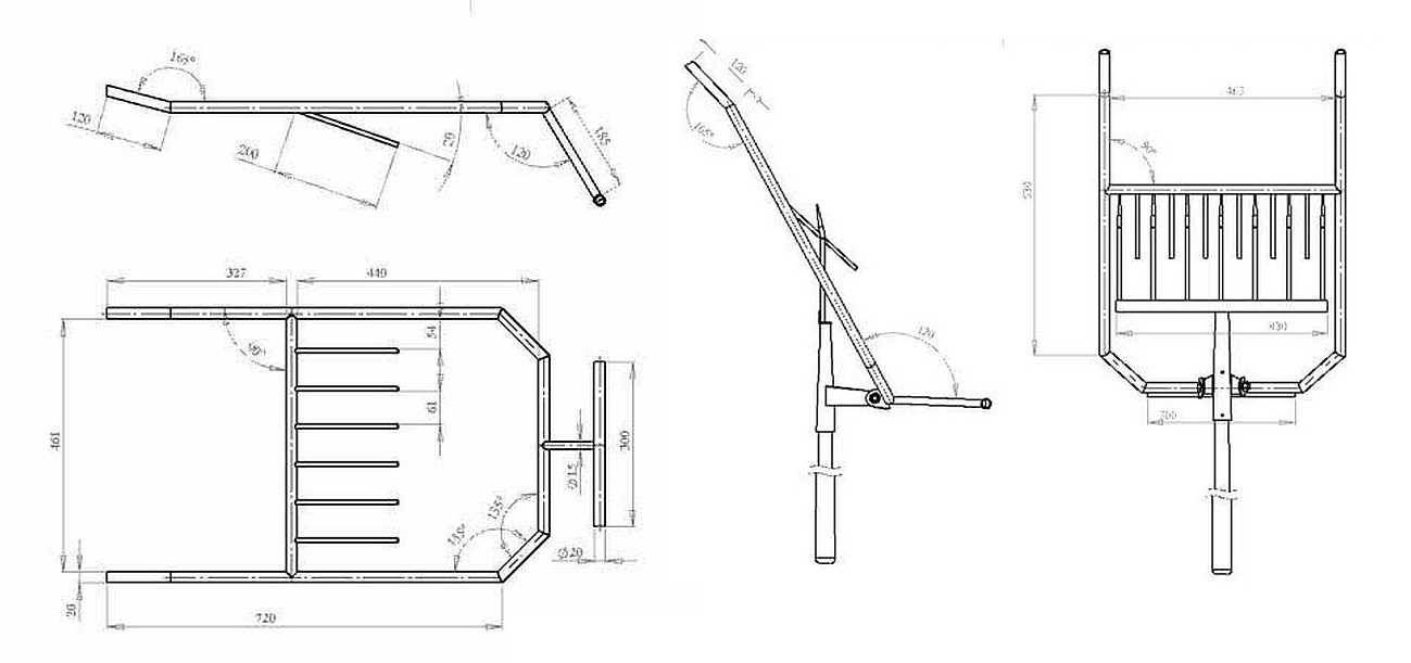 Для домашних мастеров, имеющих инженерное образование или не забывших школьный курс черчения предлагаем набор чертежей для изготовления чудо-лопаты своими руками с указанными размерами.