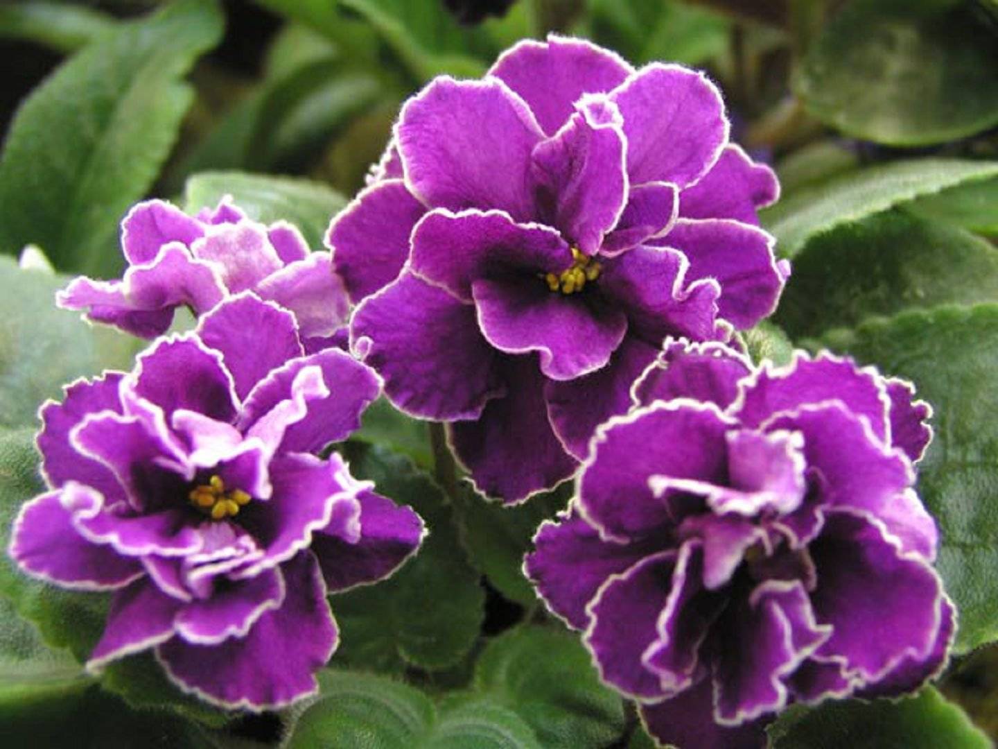 Всеми оттенками сиреневого цвета обладает узумбарская фиалка (по-другому называется сенполия). Эти цветы бывают разных сортов: от простых до махровых разных оттенков.