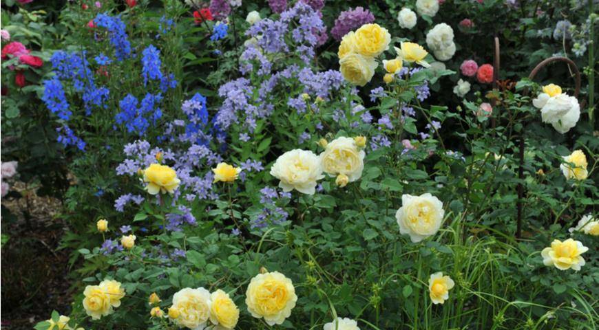 Дельфиниумы разных видов отлично сочетаются между собой, и со многими многолетниками: