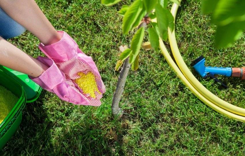 Уже при посадке вишнёвого саженца вносят в посадочную яму органические и минеральные удобрения. Если на участке бедные почвы, а удобрения не были внесены, то у плодового дерева не хватит сил нормально развиваться и плодоносить. Не стоит также забывать, что со временем плодовые деревья истощают почву, на которой растут и их нужно периодически подкармливать.