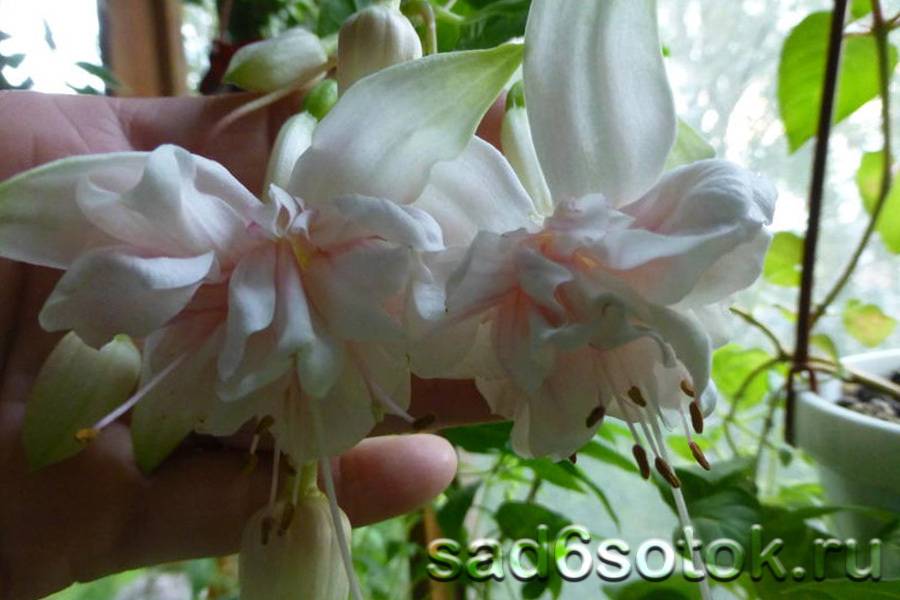 Зимой фуксию советуют переносить в прохладное помещение. Это может быть коридор, веранда или даже гараж. Главное, чтобы температура была не ниже +5. Если вы живете в квартире без балкона, то поставьте фуксию вплотную к стеклу на северном окне или ближе к входной двери. В этих местах температура ниже, чем во всей квартире. Зимой растение нужно поливать совсем редко. Один раз в месяц можно добавлять комплексное удобрение