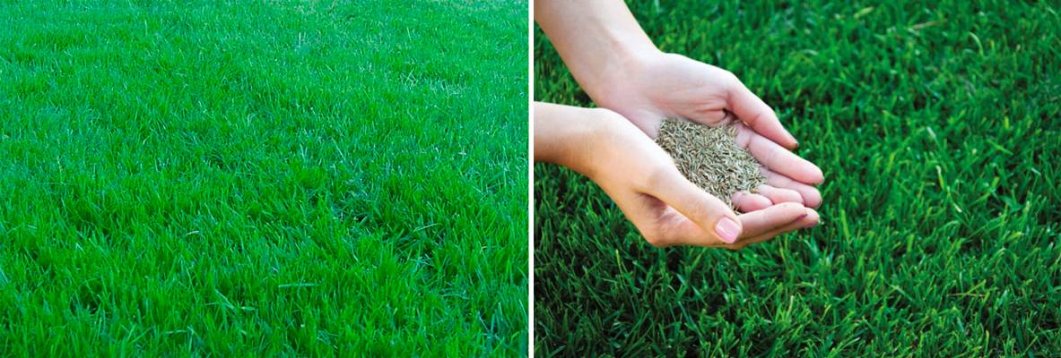 - райграс пастбищный (многолетний). Рыхлокустовая трава, сочная, быстро растет — при условии надлежащего полива. Райграс плохо переносит засуху, длительное подтопление, высокий уровень грунтовых вод и тяжелую глинистую почву. Благодаря прочным стеблям и дерну, быстрому росту семена растения добавляют в ремонтные травосмеси и охотно используют для подготовки спортивного газона;