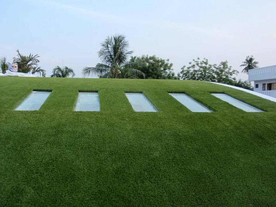 Что делать, если на участке мало света и плохие условия для роста натурального газона? Выходом станет обустройство искусственного покрытия. Современные технологии делают практически неразличимой визуальную разницу между ними. Такой газон уместно стелить около бассейна, на игровых площадках для детей.