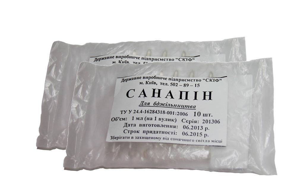 Для обработки пчел, повышения их продуктивности, стимулирования роста, повышения стойкости к негативным факторам, различным заболеваниям – применяется Санпин для пчел. Состав: активные вещества – кобальт, витамины, сахароза. Фасовка: 20 грамм. Внешний вид: порошок желтого цвета. Давать нужно до и после сбора меда. Использовать для лечения, профилактики.
