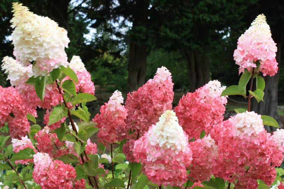 Гортензии бело-розовые метельчатые, наиболее часто встречающиеся в садах: