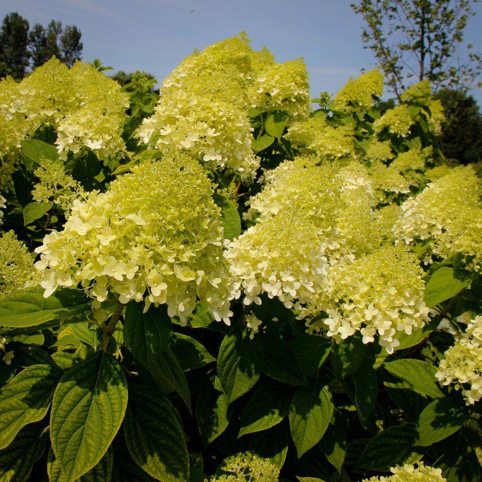 Соцветия сорта Лаймлайт ярко-желтого цвета. Высокий куст может вырасти до трех метров. Период цветения короткий: с августа по октябрь.