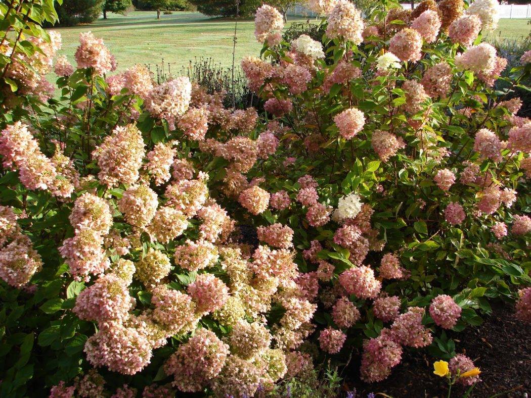 Но метельчатый сорт Limelight обильно цветет на ярком солнце, если его поверхностные корни замульчированы и не пересыхают.