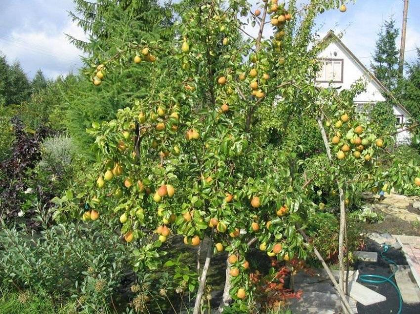 Важно! В первый год процесса плодоношения молодого дерева необходимо обязательно удалять лишние, только завязывающиеся плоды, с целью формирования правильной и красивой кроны груши