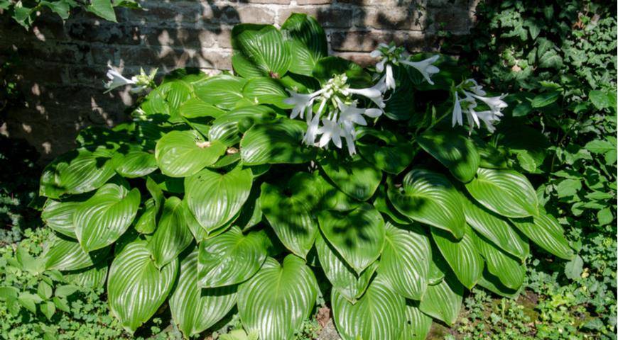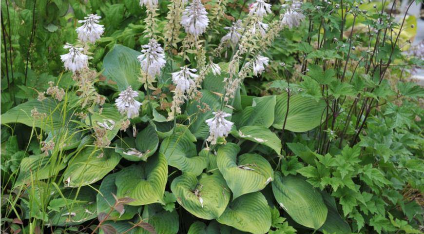 Хоста Зибольда имеет крупные листья голубоватого оттенка с матовым налётом. Цветы — бледно-сиреневые или белые, спрятанные в обильной листве. Предпочитает тенистые места.