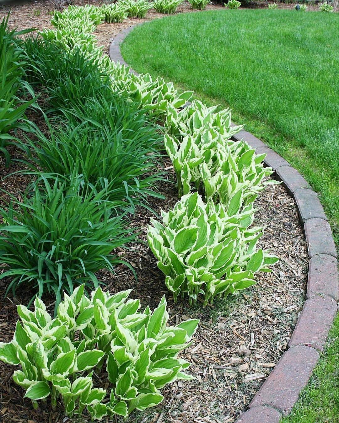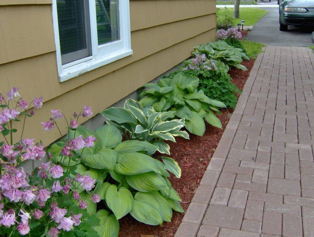 Ближе к бордюрам и тропинкам высаживают декоративные культуры с низкими стебельками. Именно для таких мест подходят карликовые виды хосты.