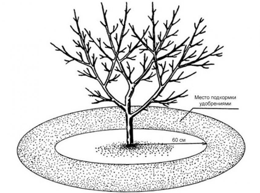 - Подкормка. Весной нужно вносить область приствольного круга азотные удобрения, летом – калий и фосфор. Органика (компост, навоз) используется один раз в два-три года.