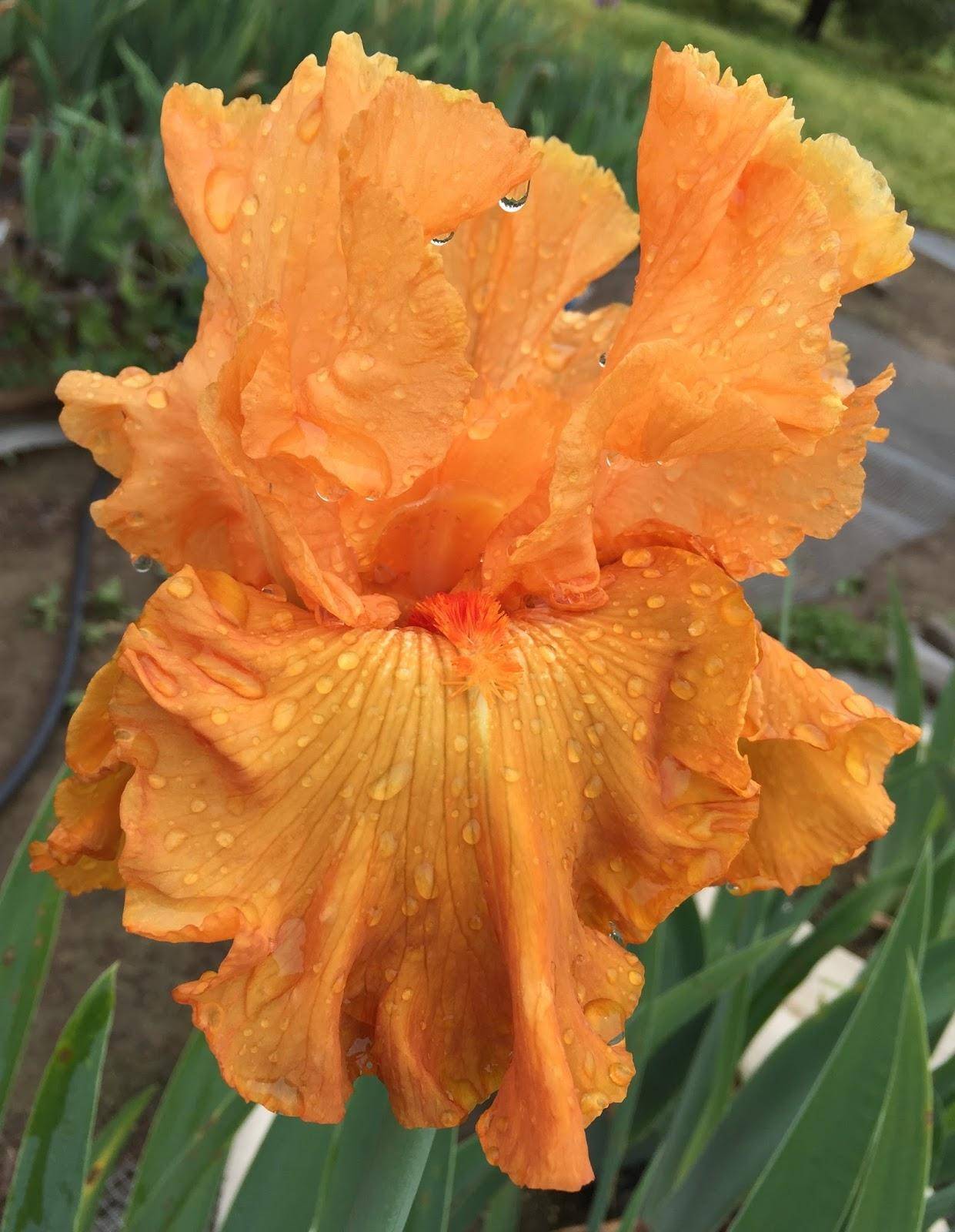 - Ирис Оранж шариот имеет стебель высотой от 0,7 до 0,9 м. У него цветок оранжевого цвета с гофрированными лепестками. Может перенести легкие морозы.