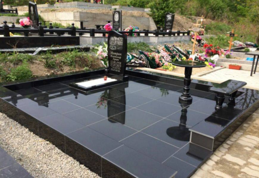 При производстве используется цементная смесь, что обеспечивает прочность изделиям. Из рассмотренных вариантов этот – наиболее простой по главным характеристикам, что не является недостатком, т. к. отсутствует требование выполнять укладку плитки на могиле с использованием материалов повышенной прочности. По этой причине вполне можно использовать изделия данной группы. Главным преимуществом является разнообразие моделей, в продаже встречается множество разновидностей, отличных по цветам.
