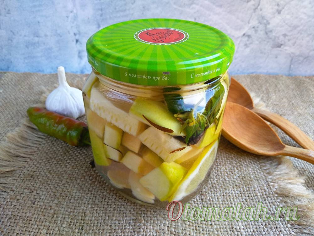 Маринованные кабачки с помидорами, вкусная заготовка на зимуПредлагаю попробовать вкусный рецепт маринованных хрустящих кабачков с кисло-сладкими помидорами в остром и…