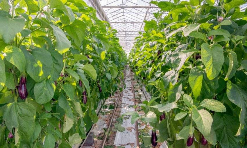 В тёплых условиях баклажаны вырастают выше (до 140 сантиметров), чем в открытом грунте и поэтому требуют корректировки куста.