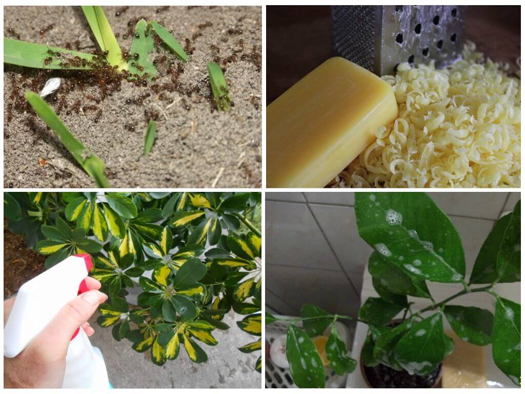 Для борьбы с насекомыми в квартире потребуется мятное мыло в количестве 1 ст. л. и 0,5 л воды. Раствор наливают в пульверизатор и опрыскивают им цветок.