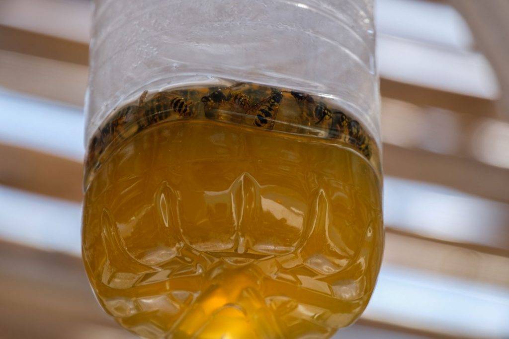 Более безобидный способ и простой – создание ловушек для насекомых. Зная о том, что жалящие насекомые обожают сладкое, то можно залить пластмассовые бутылки наполовину компотом или сиропом, разведенным в воде. Подходит и пиво, квас. Забравшись внутрь, осы не смогут вылететь из бутыли и погибают. Так снижают количество членов осиных семейств. Можно подмешать в десерт отраву. Тогда осы быстрее погибнут.