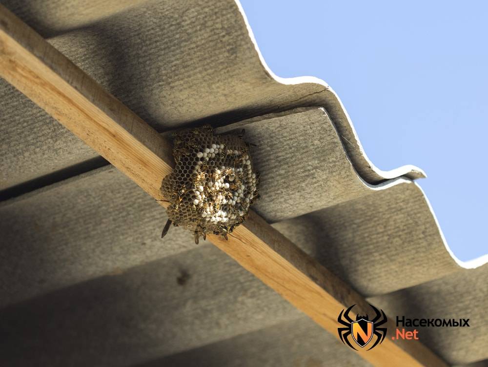 - Проследить за маршрутом ос, например, они в большом количестве могут заползать под обшивку стен или шифер на крыше. Тогда необходимо обработать отравляющими веществами поверхность вокруг их лазейки, по возможности залить как можно больше препарата внутрь, обычно эффект от подобного мероприятия такой же, как и при травле непосредственно гнезда.